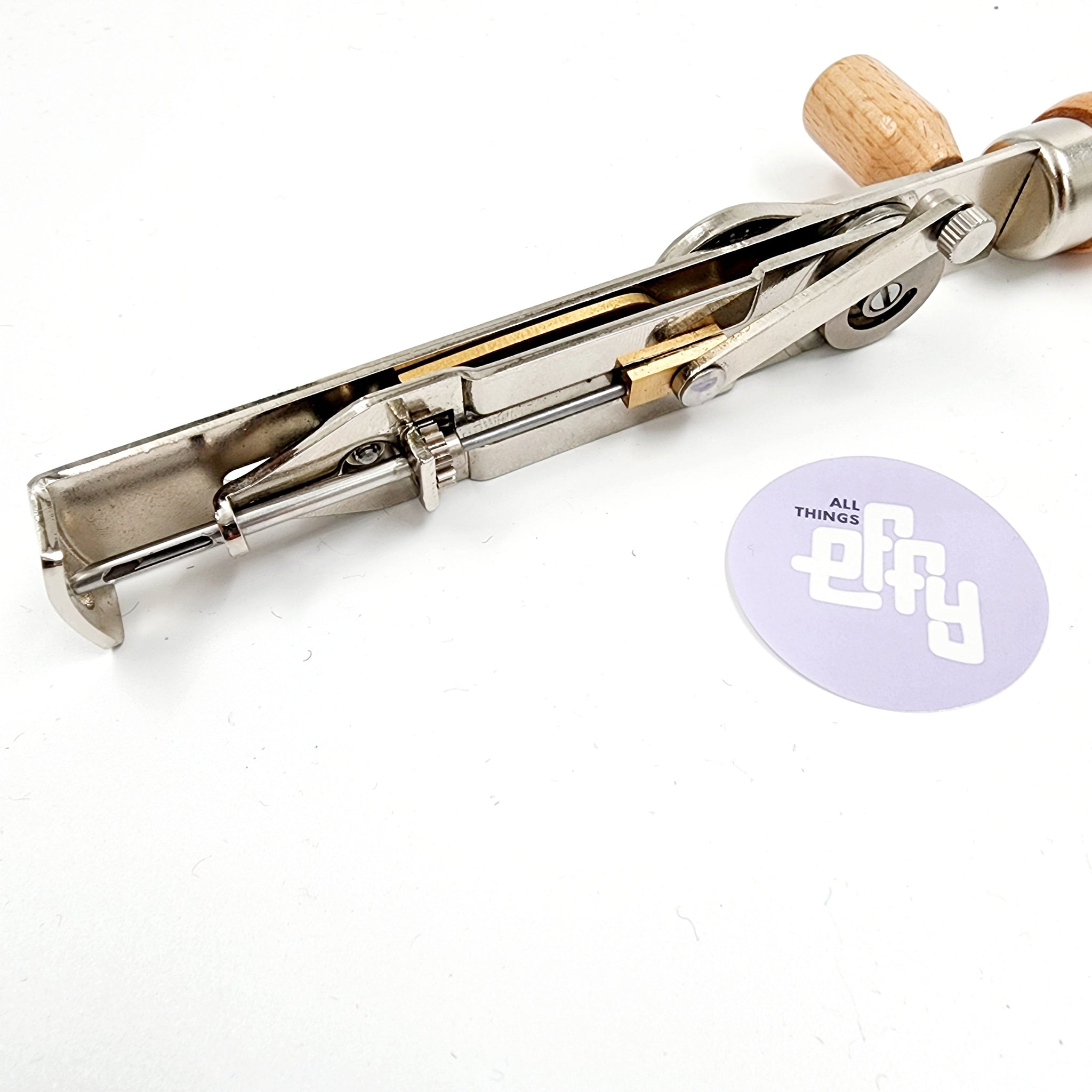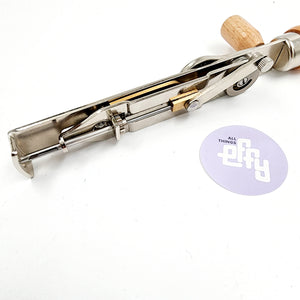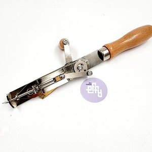 This gorgeous wood and metal rotary punch & tufting tool has been admired by tufters for years — beautifully made, hard to find, and incredibly fun to use. Unlike traditional punch needles, this rotary tool glides smoothly across the fabric to rapidly fill areas with loop pile, making it much faster than standard punch-needle methods.